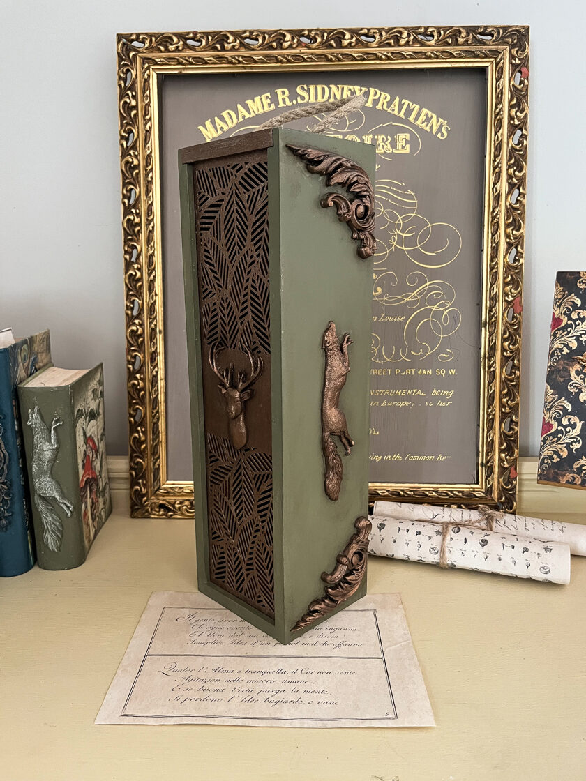 🦌We refurbished this wine box using IOD moulds, painted with Annie Sloan chalk paint and Vintage Paint Metallic Paint in Bronze and finished with Annie Sloan waxes, bringing out that rich, time-worn character