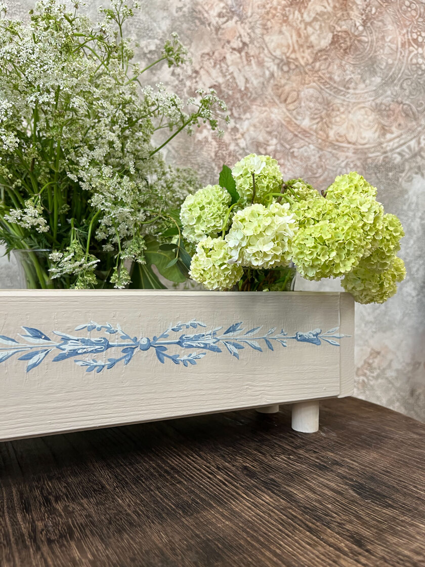 Meistarklases laikā mēs kopīgi radīsim gatavu dekoru: dekorēsim ziedu kasti French Country stilā, izmantojot Paint Inlay materiālu un krīta krāsas. Meistarklases ilgums būs 5-6 stundas. Grupā būs ne vairāk kā 5 dalībnieki. Cenā ir iekļauti visi Tev nepieciešamie rokdarbu materiāli, dekora pamatnes un nelielas uzkodas ar dzērieniem. Visi meistarklases dalībnieki mājās dosies ar gatavu, pabeigtu dekoru.
